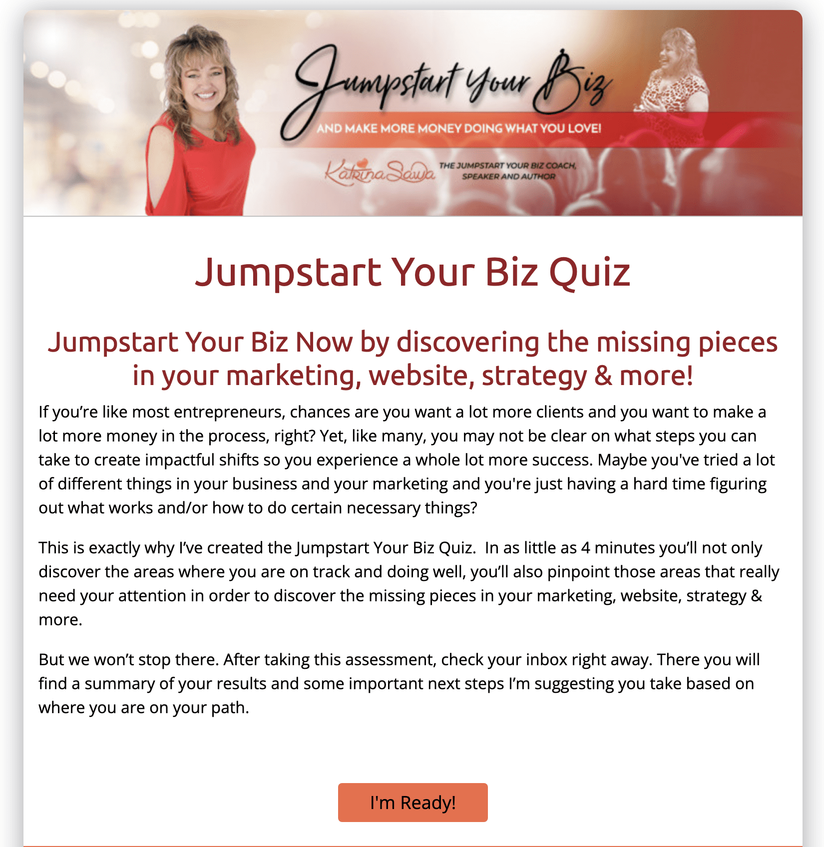 2) Take my Free Jumpstart Your Biz Quiz Now and Learn What’s MISSING in your business, marketing, positioning and more so you can FIX IT quick!