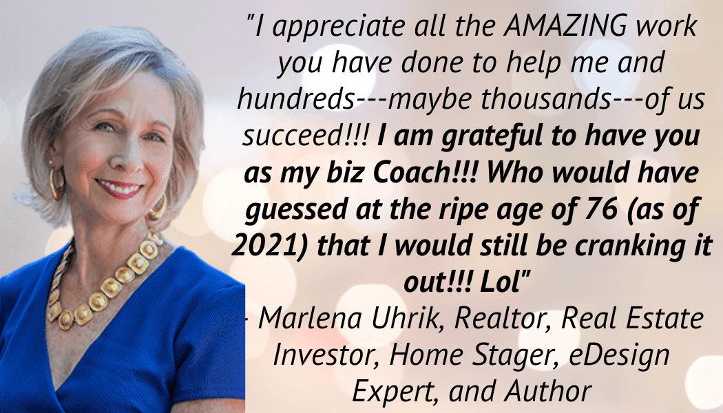 Attend one of my Live Training Events on Zoom, or my 3-Day Deep Dive Masterminds held all over the US – they are amazingly transformational and give you a TON of practical, tactical strategies to jumpstart all areas of your business now.