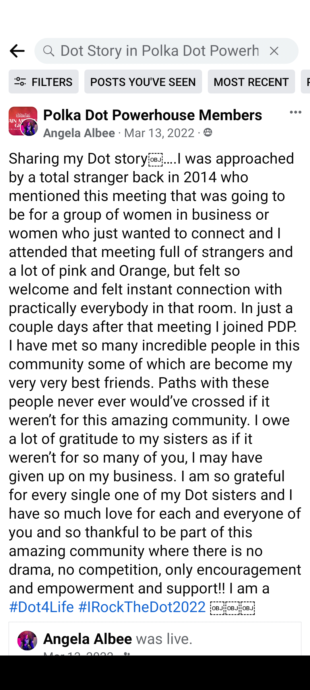 I have not only been encouraged thru this year but supported when the times got tough. Thank you to all my amazing, and I mean amazing Dot Sisters who believed in me and inspired me thru their actions and words.