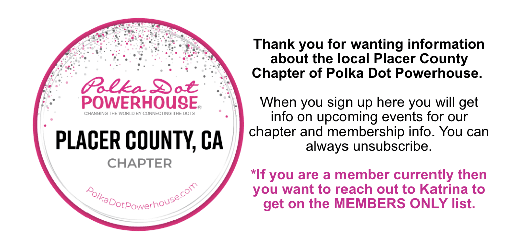 Polka Dot Powerhouse is a women’s connection company that I’ve been a member of since Sept 2018. I have started a chapter here near me NOW because I was longing for more deeper connections with like-minded, successful and positive women like you!