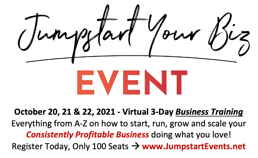 6) Registration is NOW OPEN for the October Jumpstart Your Biz Event!! Go sign up now while tickets are only $97… that price won’t last long! This is my bi-annual business and marketing 3-day training event that always has new content, new strategies and I give out new templates and resources too. Plus receive a huge bonus of my entire Jumpstart Your Sales online course when you register! (This bonus is a $297 by itself… you get it for just $97 when you register for the event!)